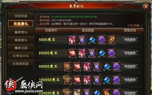 活动说明:活动期间,每日累计充值达到指定魔石数量,即可领取超值豪华大礼