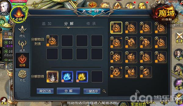 神火还有一点独特之处在于“变废为宝”,玩家在任务、打怪中获得多余的神火,可以用来分解为神火的养成材料,品质越好星级越高的神火所能分解出的材料越多。而通过这些养成材料则又能提升已有神火的实力,让玩家实力也获得进一步提升!